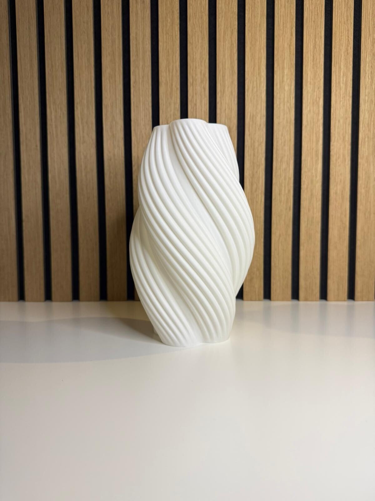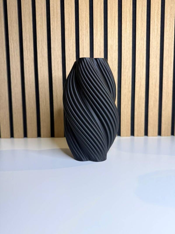 De zachte draaiing in het ontwerp geeft de vaas een speels effect zonder druk te worden, waardoor hij makkelijk past in vrijwel ieder interieur.