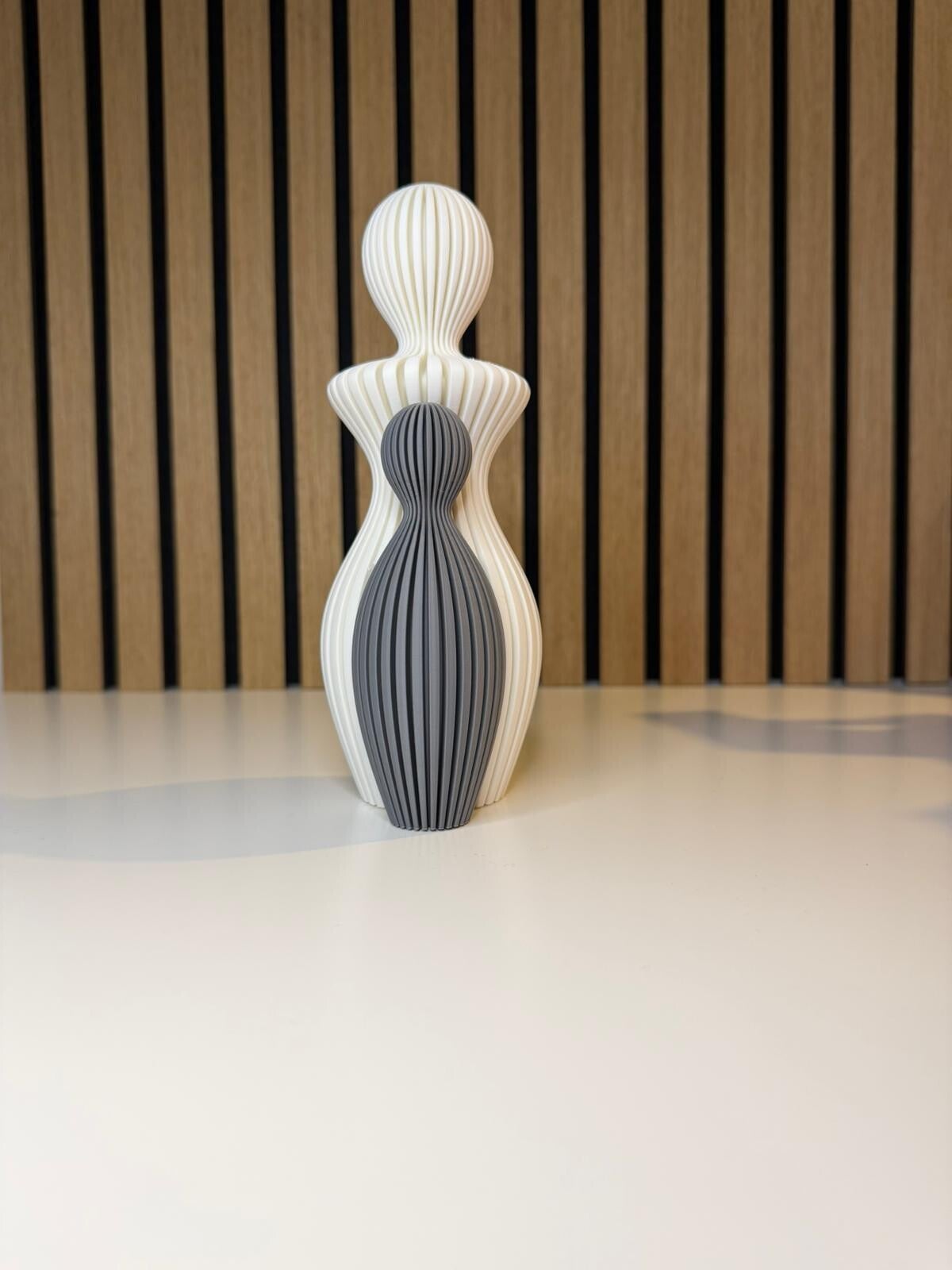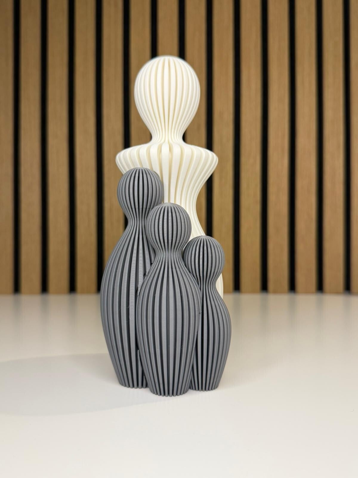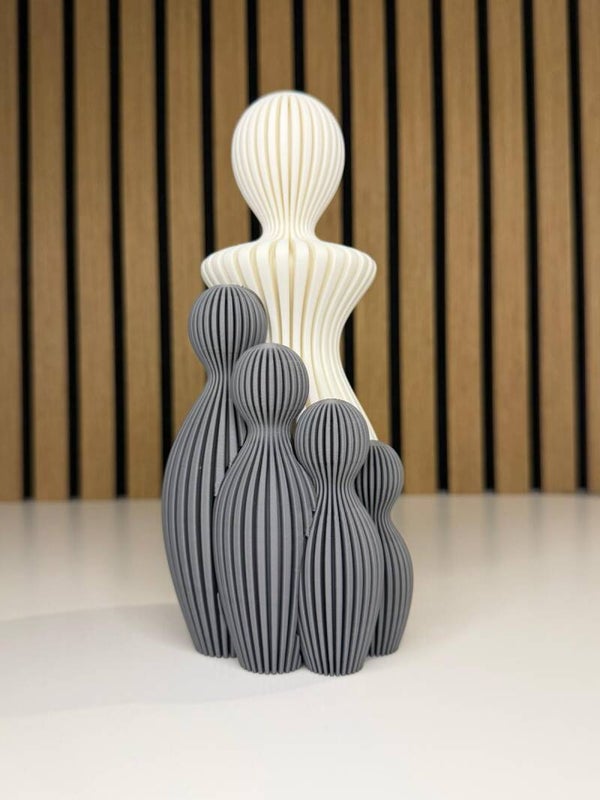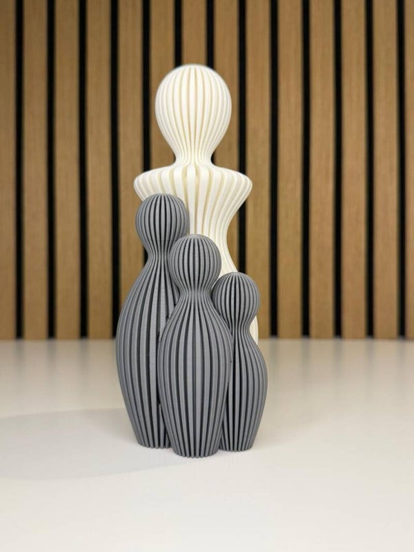 Een modern en minimalistisch beeld van een moeder met haar kind(eren). De vloeiende lijnen en verfijnde ribstructuur zorgen voor een rustige, stijlvolle uitstraling die past in ieder interieur.