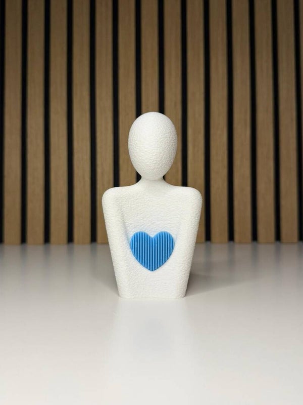 Dit bijzondere geboortebeeldje staat symbool voor de liefde en verbondenheid tussen ouder en kind. Het minimalistische figuur met een hartje op de borst geeft op een rustige en warme manier weer hoe speciaal de komst van een baby is.