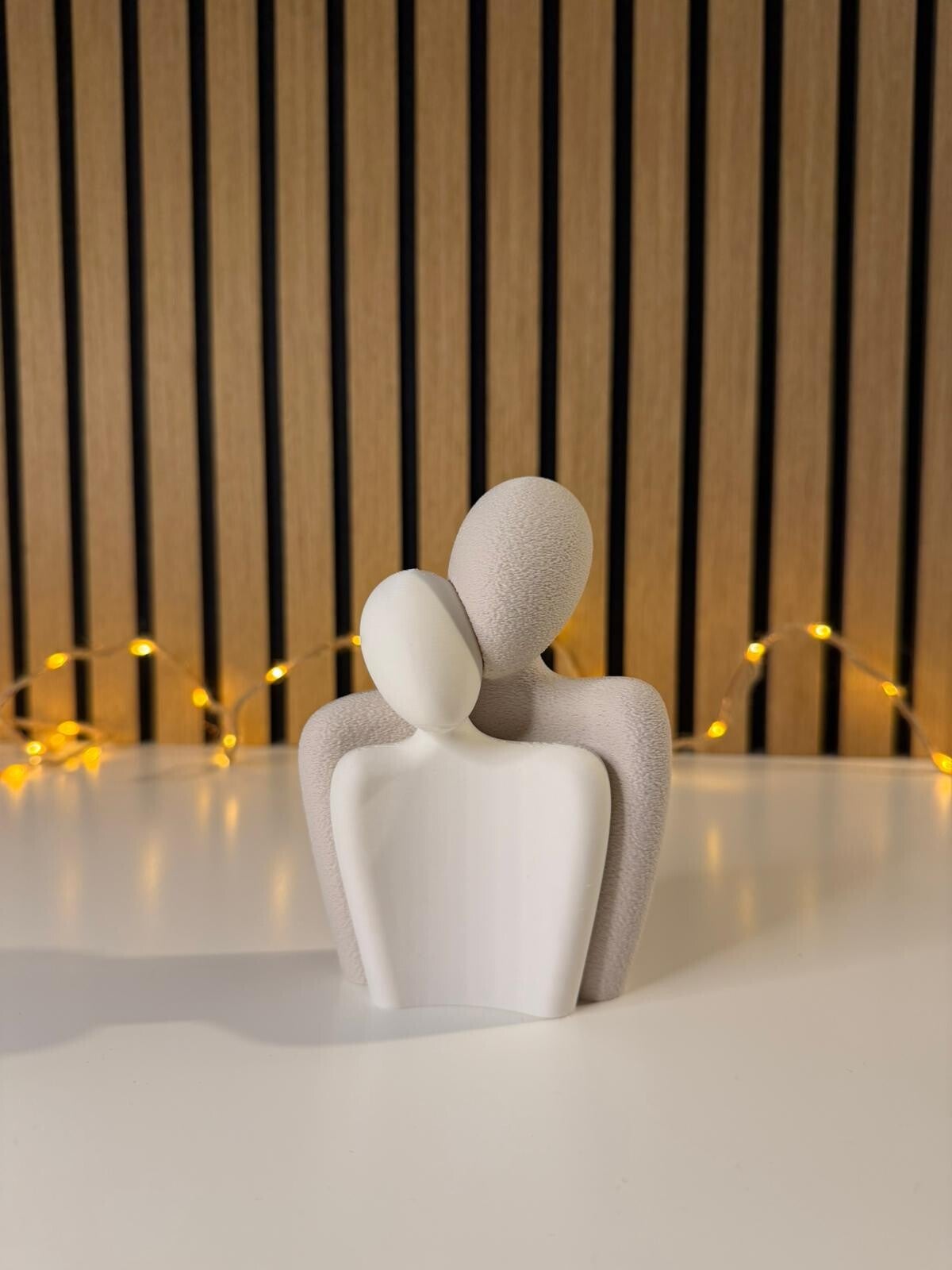 Dit stijlvolle samen beeldje symboliseert liefde, verbondenheid en samen zijn. De minimalistische vormen laten op een mooie en rustige manier de band tussen twee mensen zien.